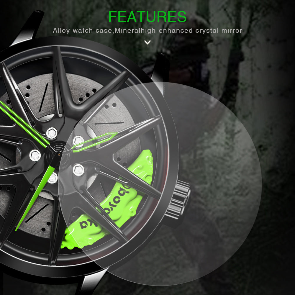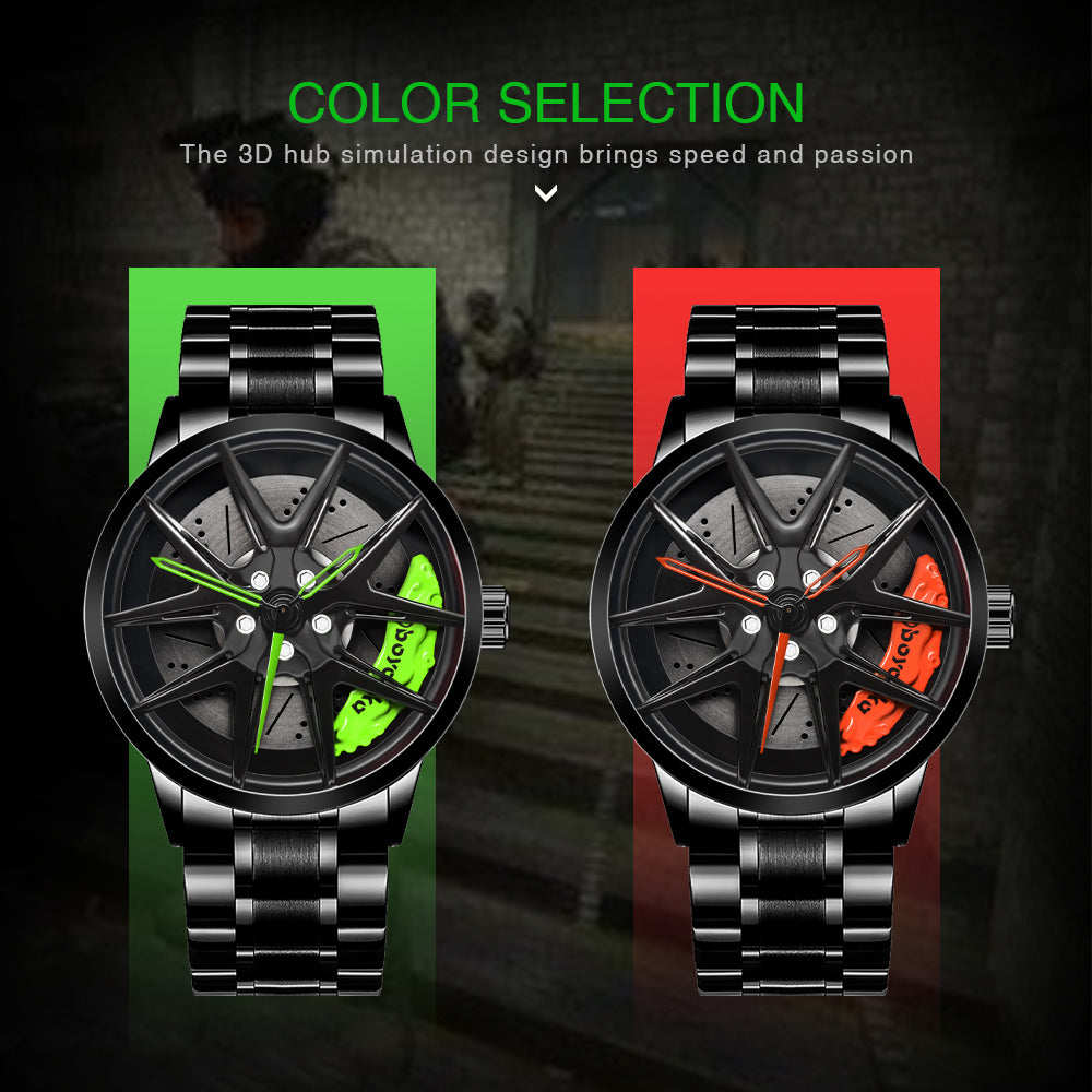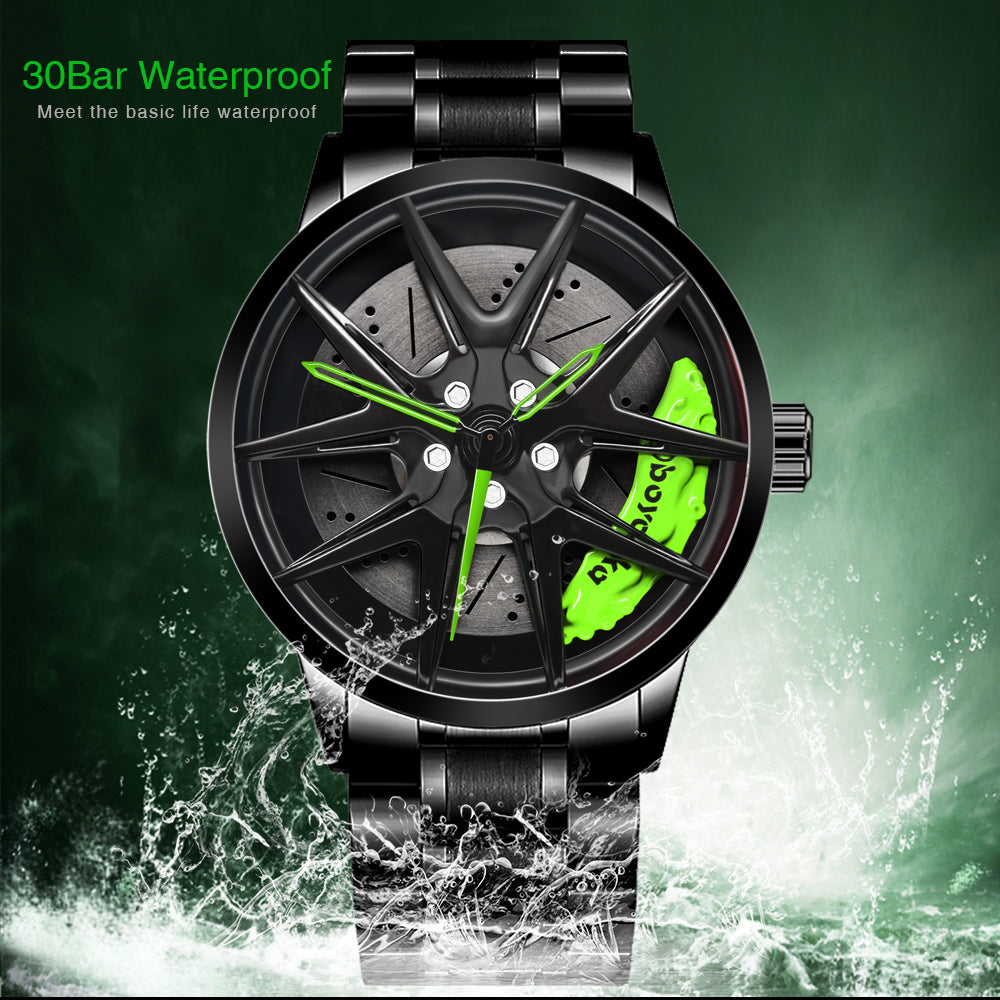 Car Wheel Watch-Waterproof Stainless Steel Japanese Quartz Wrist Watch