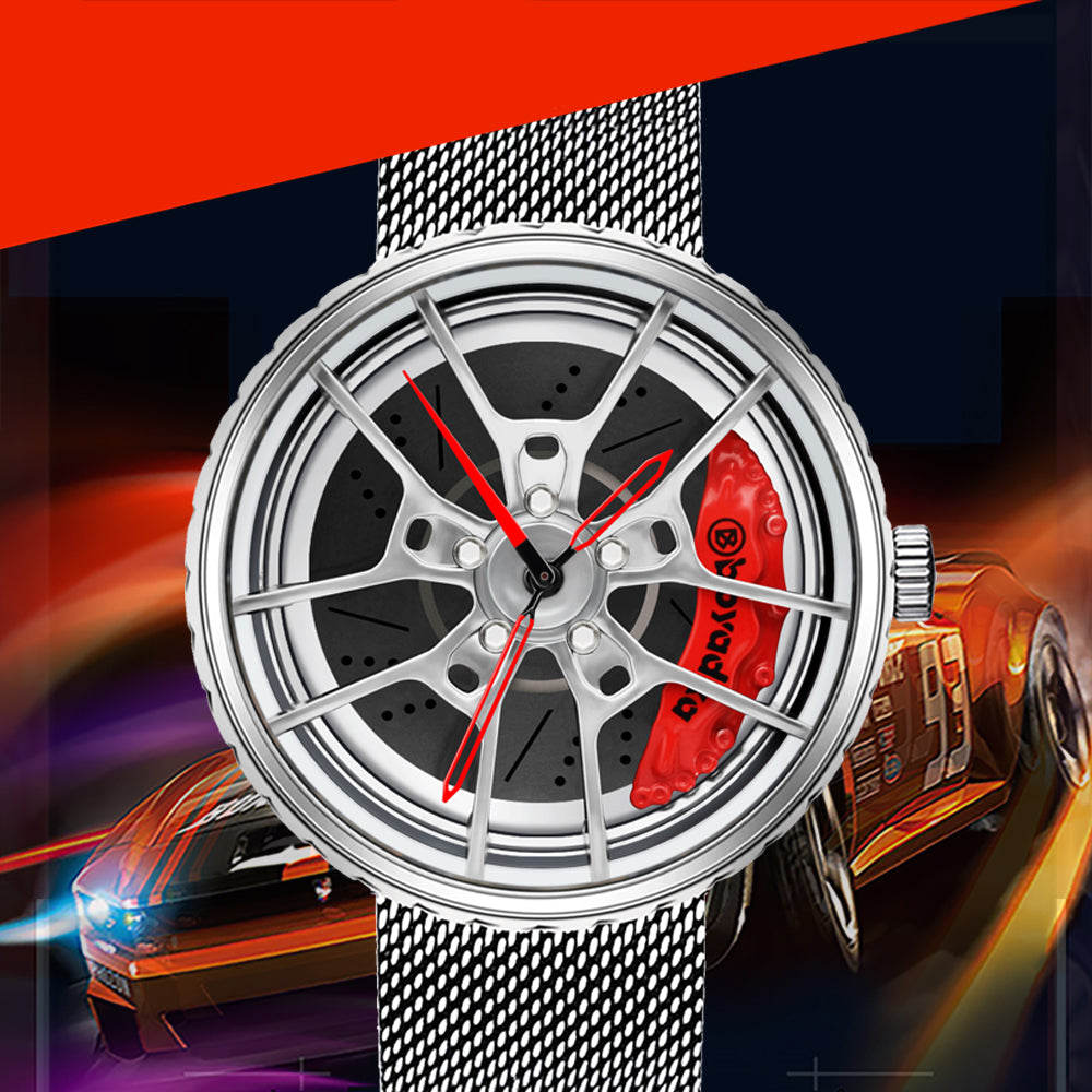 Car Wheel Watch-Waterproof Stainless Steel Japanese Quartz Wrist Watch